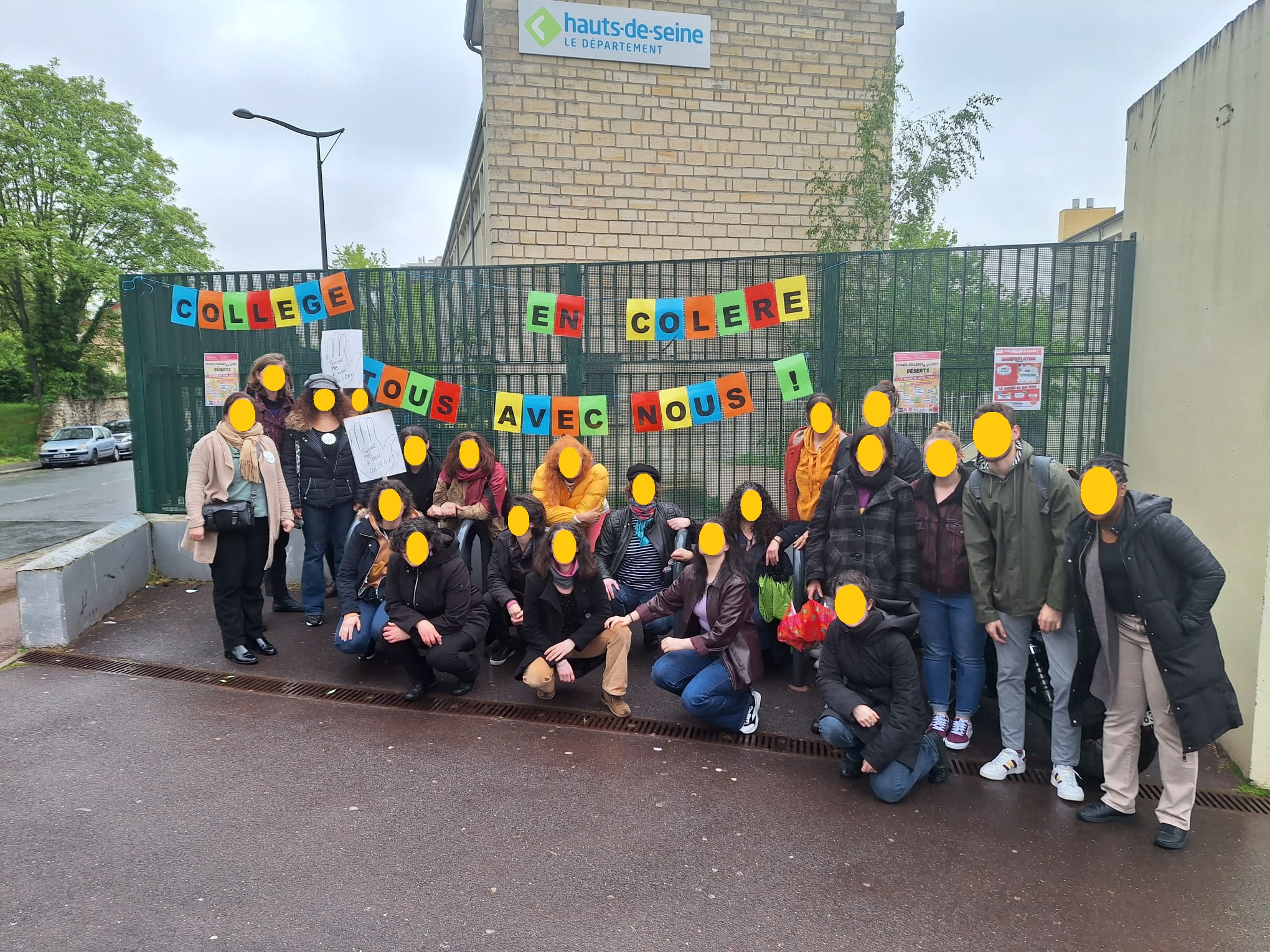 En plus de la manifestation parisienne, les personnels se sont réunis devant leurs établissements (comme au Collège Maréchal Leclerc de Puteaux) :
