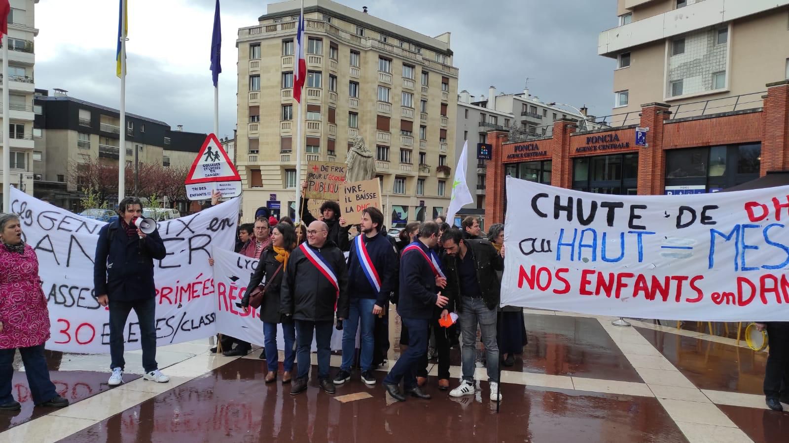 Succès de la manifestation : Elu.es, parents et enseignant.es étaient présent.es en grand nombre samedi dans les rues de Montrouge pour proteste contre le choc des savoirs et la baisse des DHG.
