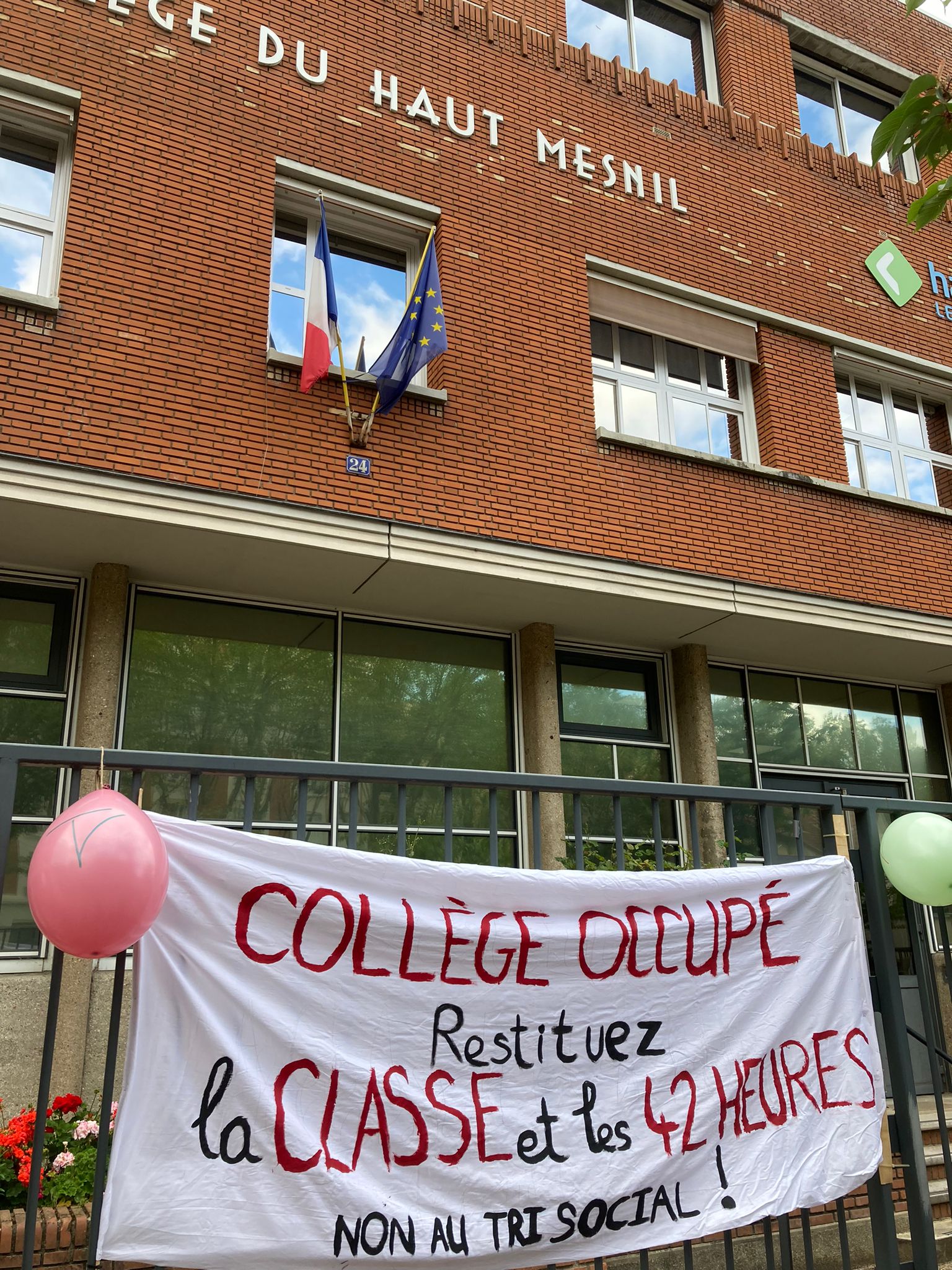 - Occupation du collège du Haut-Mesnil de Montrouge le 13 mai au soir : Parents, enseignant.es et élu.es ensemble contre le choc des savoirs